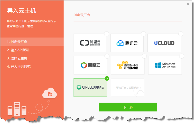本版本支持了国内云计算行业中的技术流、首家按秒计费的云厂商-青云。目前为止,行云管家已经支持了7家云厂商,下一家支持的云厂商,还是您说了算,快点联系在线客服反馈吧!