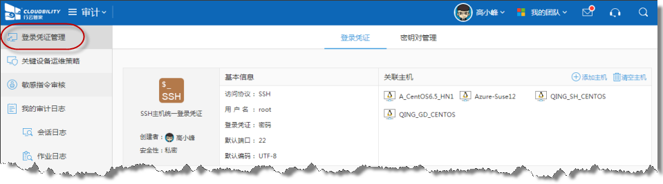 将原先位于团队设置中的“主机接入方式”,调整到安全审计功能模块中,重新命名为“登录凭证管理”,并取消登录凭证中关于公网和内网访问的限制,访问主机时可灵活选择公网IP或内网IP。