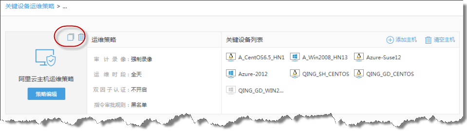 考虑到精细化的授权场景,用户通常都需要定义多个运维策略,而运维策略中关于指令黑白名单的设置相对较繁琐,我们提供了运维策略复制功能,用户设置好一个运维策略后,可以复制创建另外一个策略,避免重复输入大量的指令黑白名单。