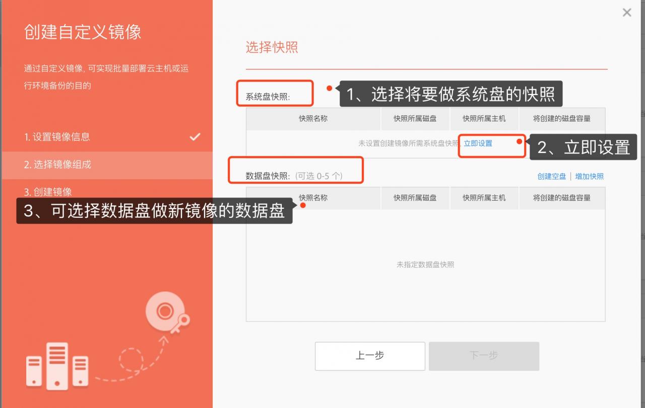 2、选择系统盘快照和数据盘快照,最后合成一块完整的镜像盘。