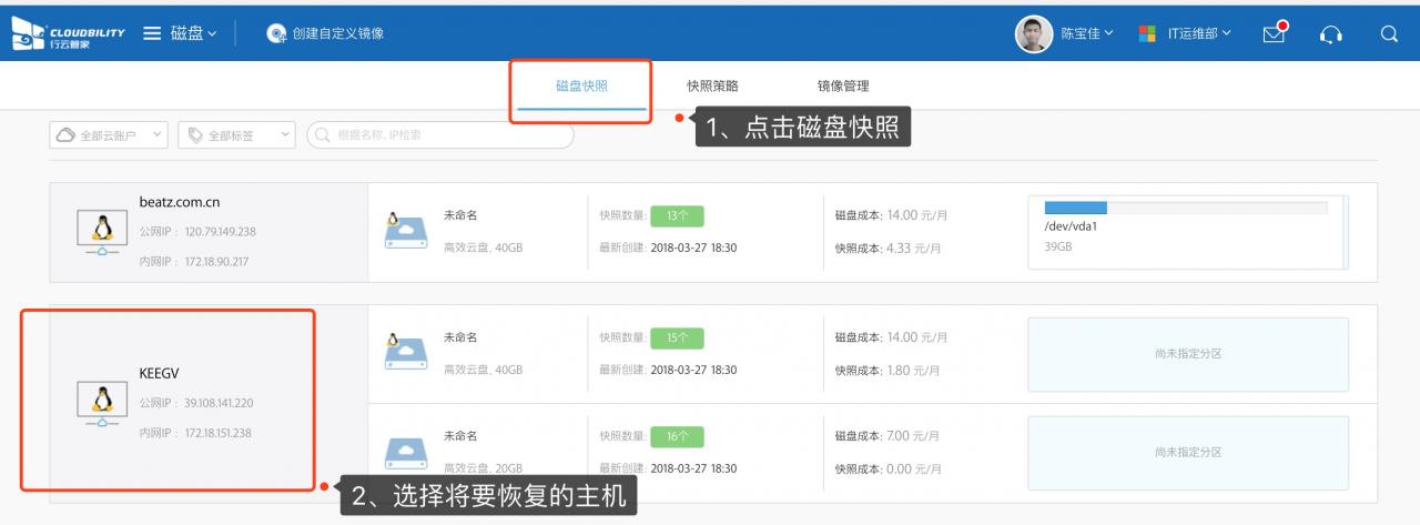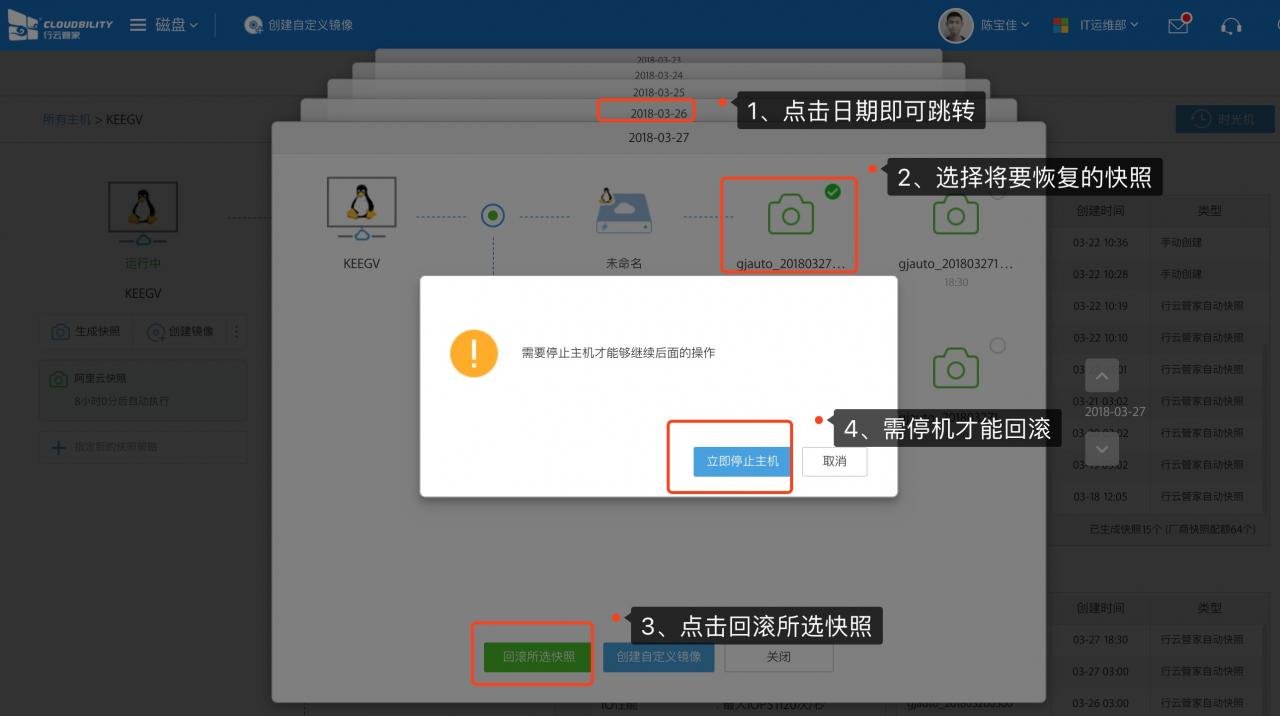 选择目标磁盘 –> 选择回滚日期 –> 一键恢复