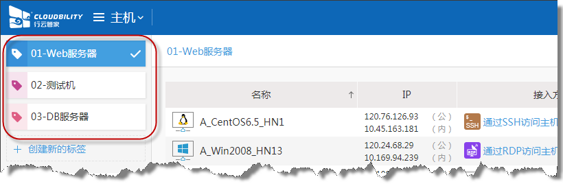 主机标签能够方便用户对主机进行分类,本版本对标签的排序进行了调整,由按创建时间改为按名称排序,用户可以依据使用习惯,调整标签名称的首位实现自由排序。