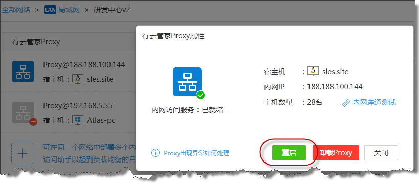 门户端重启Proxy/内网访问助手或Agent: