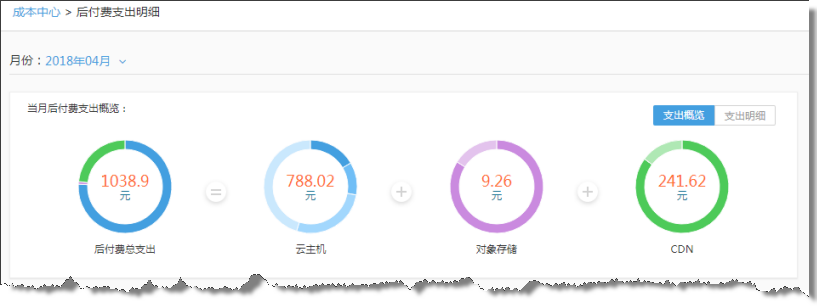 关注后付费的用户,相信您一定苦于缺乏统计每月后付费支出的方法。本版本在成本中心后付费明细中,新增支出概览,用户可查看每月后付费总支出、按产品类型汇总,让您对后付费支出结构一目了然。
