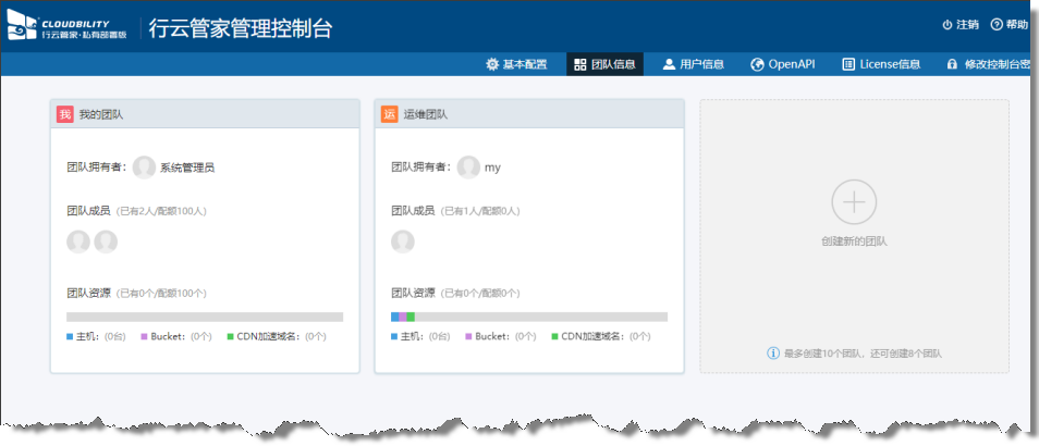 私有部署版在License团队数量配额足够的前提下,允许创建多个团队。
