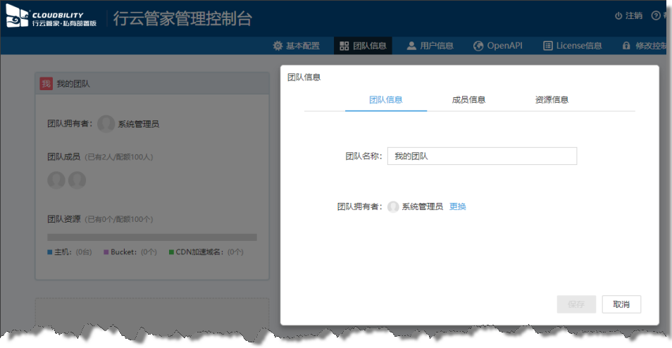 b)团队信息内容展示的更丰富:新增了团队配额使用详情,团队成员信息的展示;