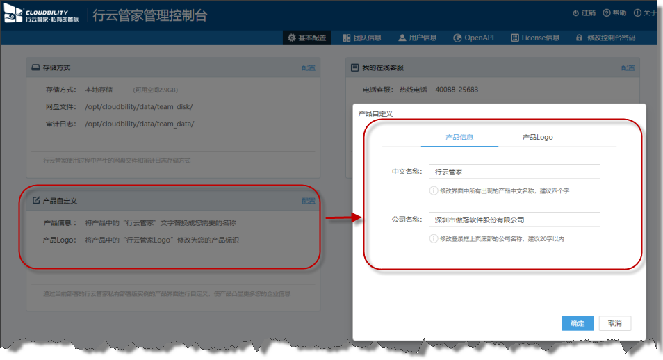 c)支持界面自定义:私有部署版可对产品名称、产品Logo进行自定义,使产品更加凸显您的企业信息。