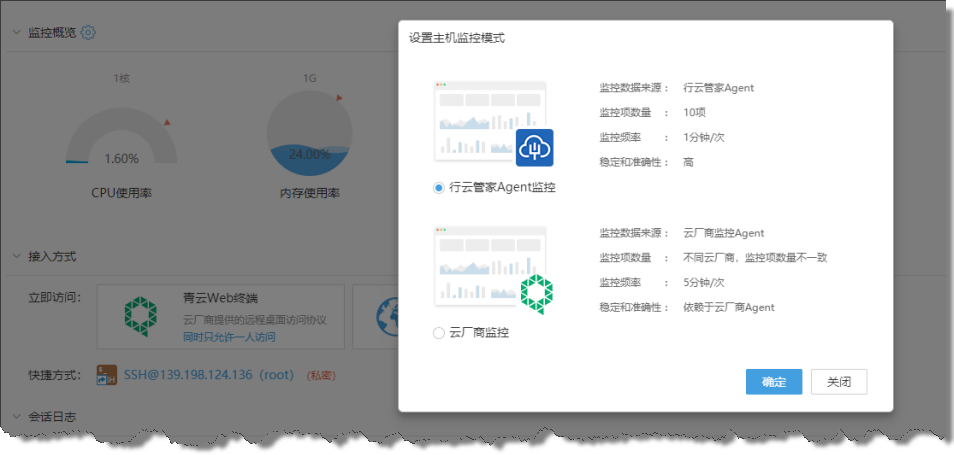 b)允许云主机将监控模式从行云管家Agent切换回云厂商监控;