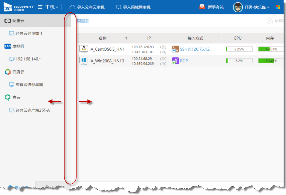 主机和对象存储界面均包含有一个左侧树形导航栏,当主机网络或对象存储Bucket的名称较长时,查看不方便。本版本允许用户调整导航栏,再也不用担心主机网络或Bucket名称超长的问题。