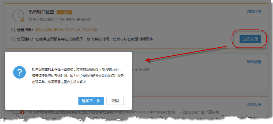 a)可以直接在线处理的体检项:例如异常账户的锁定、系统时间的同步,可以通过行云管家直接一键修复;