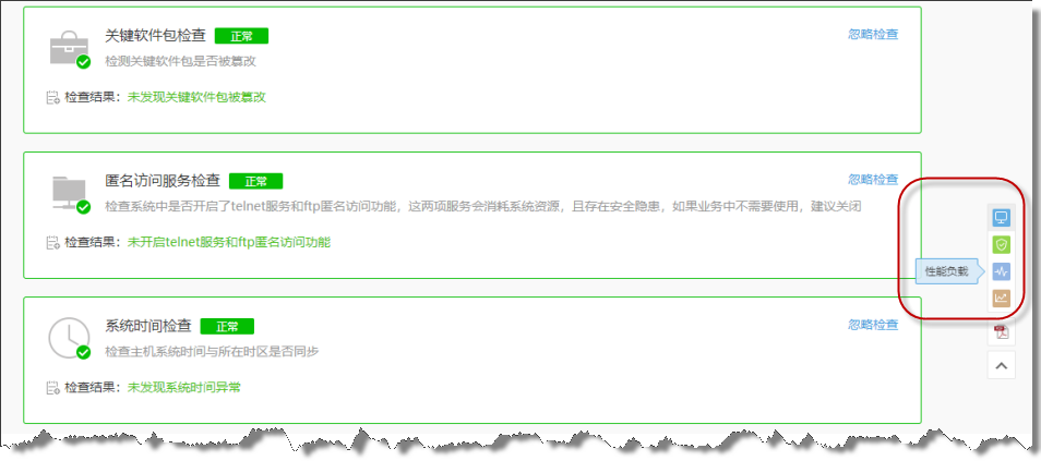 b)需要通过行云管家其它功能辅助处理的体检项:例如开启内网访问服务、主机负载模拟等,将引导用户通过行云管家其它功能进行辅助处理;