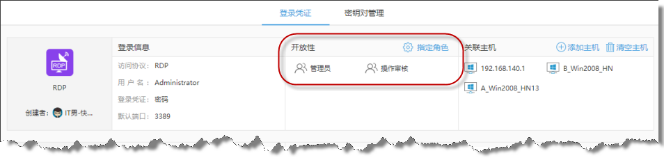 在现实业务场景中,我们经常需要为不同的团队成员分配不同的主机登录口令,实现更细粒度的权限管控。本版本开始,登录凭证支持按角色进行授权,只有授权后的角色才可以使用该登录凭证,以实现不同的角色使用不同的账号访问主机的需求。