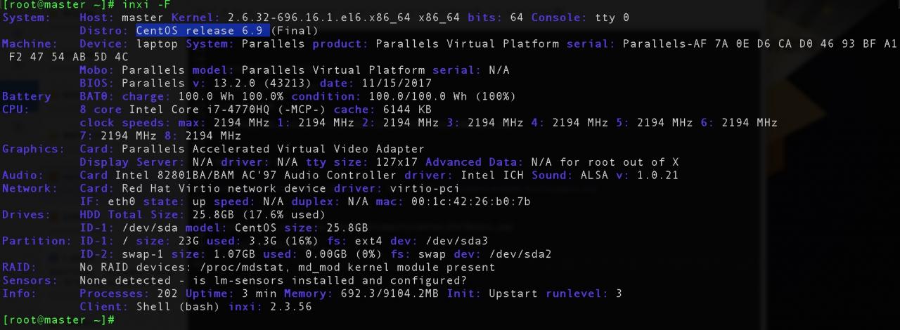 CentOS 6.9 64位 8核9G
