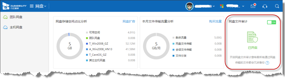 为了实现该需求,在网盘概览中,新增了“网盘文件审计”设置,开启后,所有通过网盘进行的文件交互,都会被冗余备份。