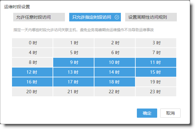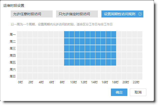 b)除了以天为维度指定固定的访问时段外,还支持以周为维度设置周期性访问规则,方便将工作日与非工作日进行区别对待。