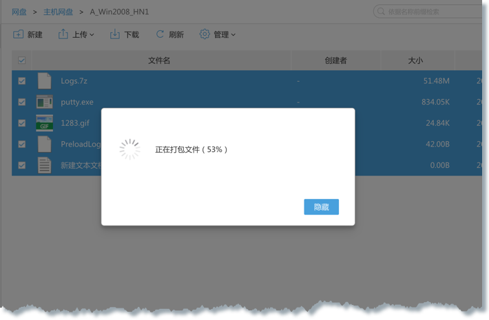为了提升私有部署版本下大量文件下载的效率,当部署的行云管家实例使用本地存储方案时,支持多文件或文件夹的打包下载。