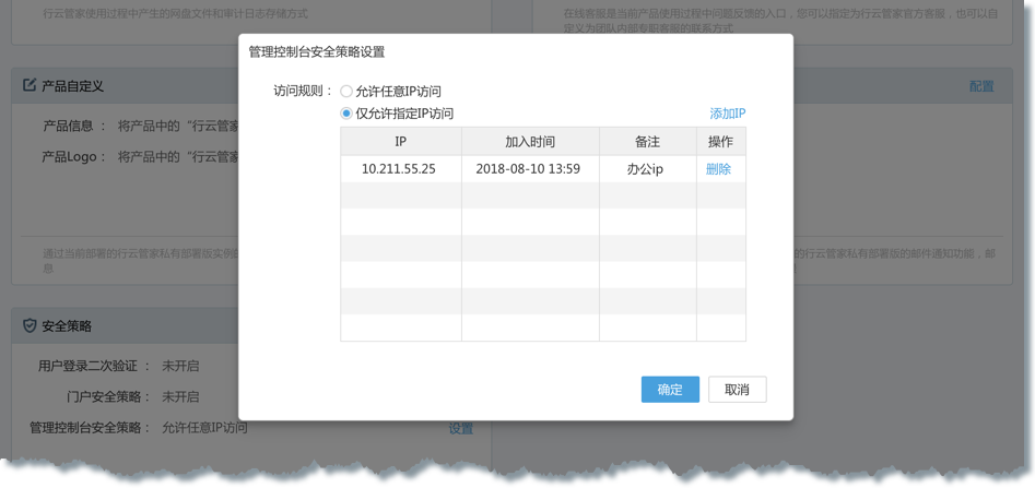 c)管理控制台安全策略:为增强管理控制台的账号登录安全,可以设置IP白名单,仅允许特定IP访问,不在白名单中的IP将不能访问管理控制台。