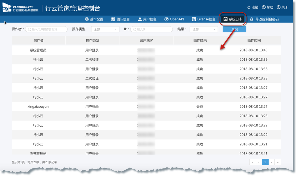 为了更好的查看私有化部署版本中门户与管理控制台的登录情况,我们在管理控制台中新增系统日志,记录了用户登录、二次验证和管理员的登录相关信息。