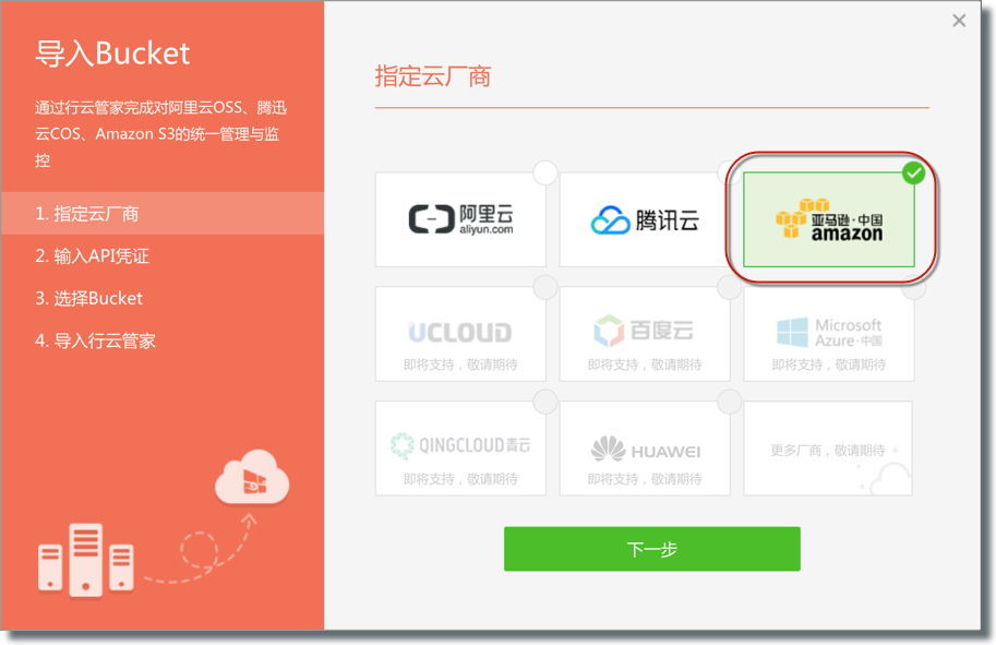在新的版本中,我们增加了对AWS中国的支持,具体有以下改进:a)支持对象存储服务S3:在对象存储模块中可以导入Amazon S3的Bucket以完成对其的管理与监控。