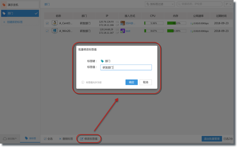 c)增加批量修改标签值:为某标签下主机批量定义标签值,以提升效率。