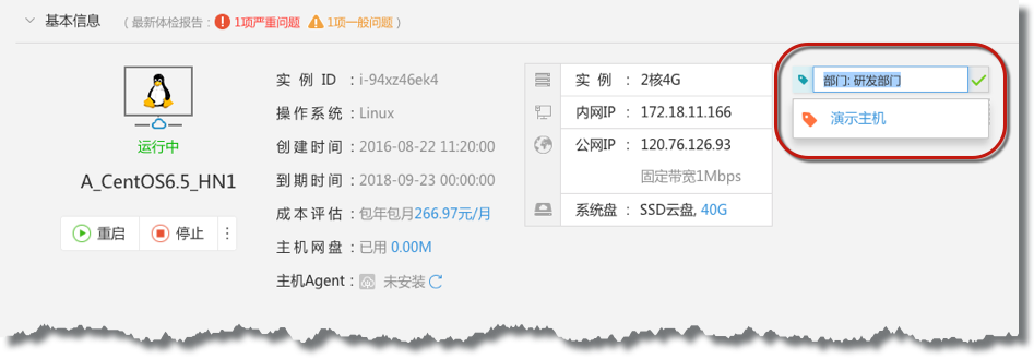 d)增加修改单个主机标签:单机标签进行编辑,可修改为已有标签也可修改为新标签。
