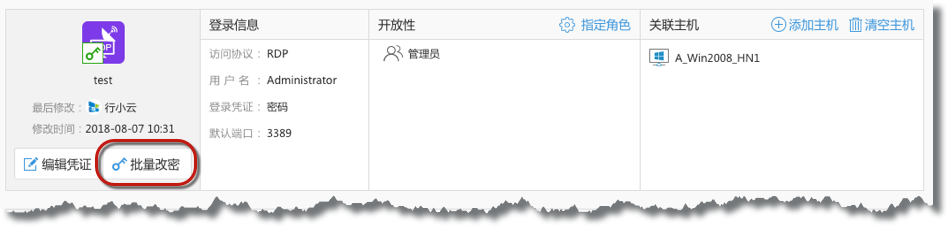 在新的版本中,我们支持了通过对登录凭证的方式来对主机批量更改密码的功能。用户可以定期通过登录凭证管理中的批量改密功能定期修改主机账号密码,以提高主机账号的安全性。