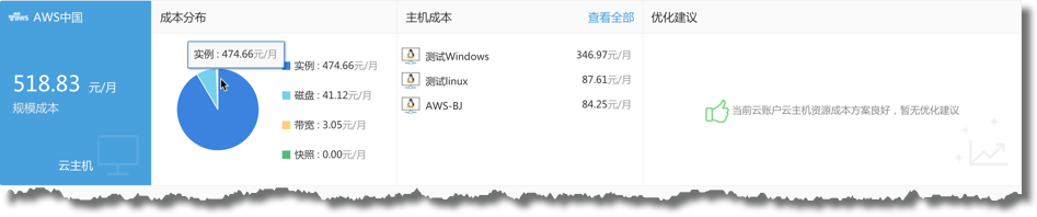 b)支持AWS中国的云主机资源成本分析:在成本中心里可以对AWS中国的云主机资源进行成本统计与成本优化评估。