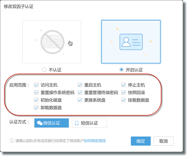 为了方便用户灵活的配置不用场景下的的运维策略,我们针对双因子认证以及指令审批规则的设置上进行优化:a)双因子认证:当开启上因子认证时,用户可以针对访问主机、重启主机等10个应用场景做自定义配置,配置之后只对选择的场景启用双因子认证。