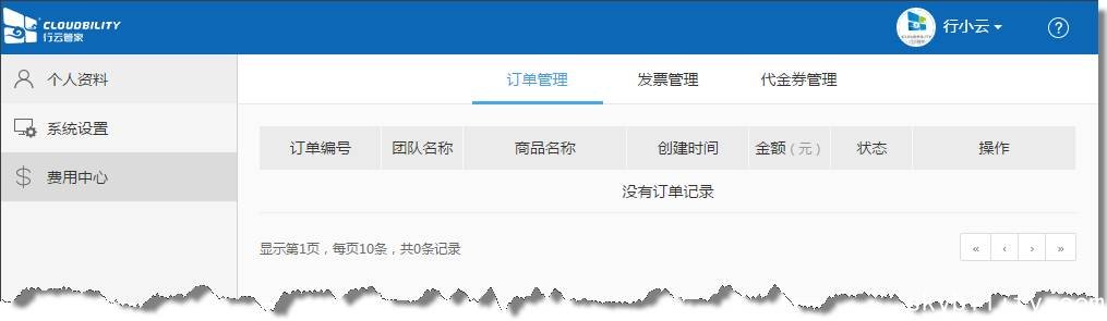 鉴于行云管家从本版本开始提供专业版团队服务,因此新增“费用中心”,为用户提供“订单管理”、“发票申请”、“代金券”等三个功能。费用中心入口位于用户信息下拉菜单中。