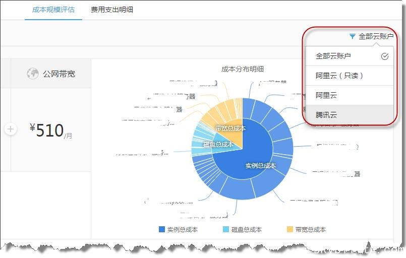 将“成本趋势”升级为“费用支出明细”,从包年包月和按量计费两个维度来展示支出详情。相较于成本趋势,本版本有以下优点: 1、包年包月主机成本更加清晰,并能够体现主机的变配历史;