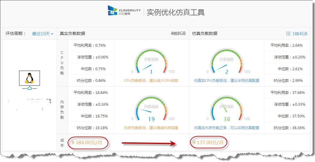新增“负载指数”概念,该指数是直接反映当前配置负载情况的指标,也是优化仿真工具对是否增减配做出结论的决策数据支撑。同时,对负载数据展示及变配前后的对比进行调整,调整之后的界面更简洁,更利于用户对比变配前后负载情况及成本变化。
