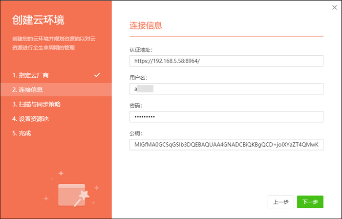注意:(a)如果勾选了“创建云账户”,将自动为每个资源池中的云资源创建一个用于运维的云账户,请在“资源运维”模块中进行运维管理;