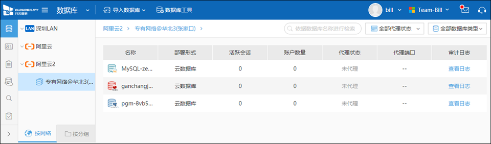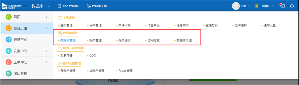 点击“资源运维”下的“数据库运维”,可以进入“数据库代理”来管理和查看数据库代理情况;