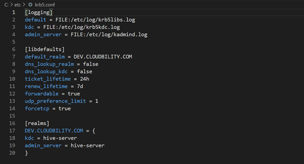 krb5.conf以下有样例,kdc、admin_server一般都是服务名,需要将他们配置到所选代理机器的hosts上。
