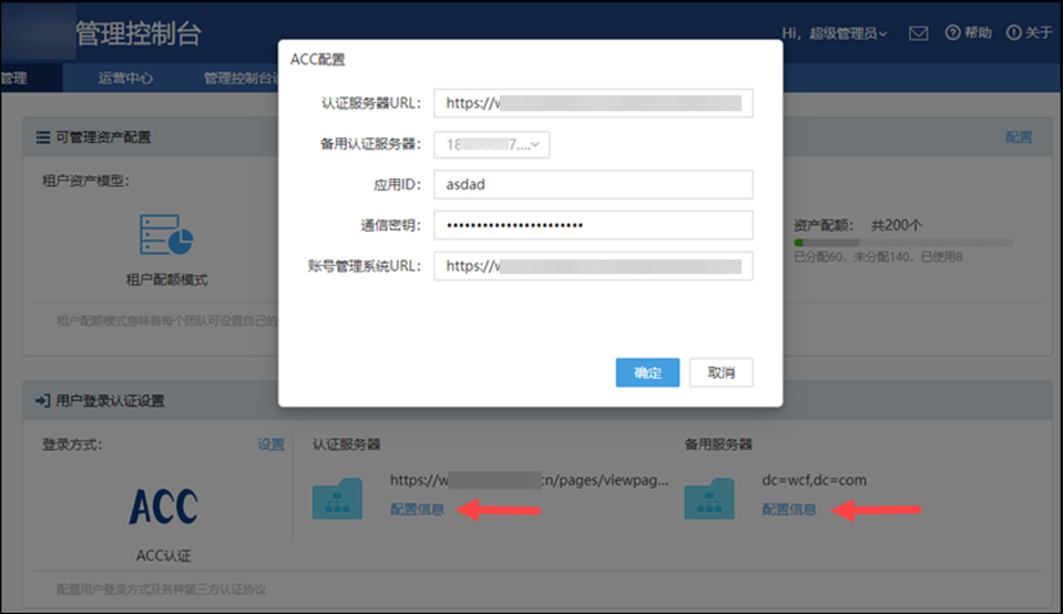 在开启ACC单点登录之前,您需要指定ACC Server相关配置信息;