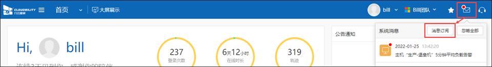 如图,登录行云管家点击右上角的信封图标里的“消息订阅”;