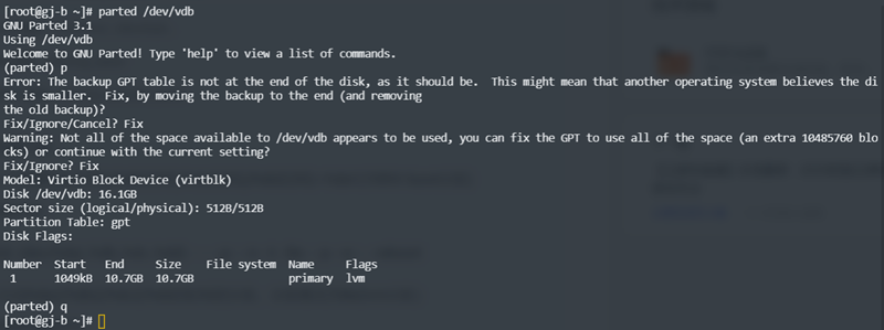 parted /dev/vdb