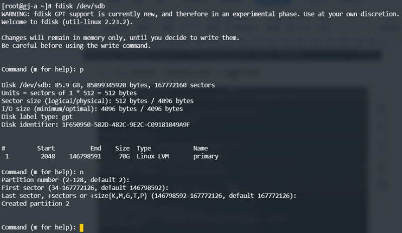 2.1、执行以下命令,进入fdisk分区工具界面