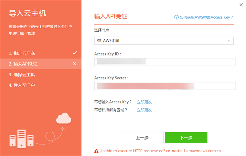 导入AWS中国公有云提示报错:Unable to execute HTTP request:ec2.cn-north-1.amazonaws.com.cn