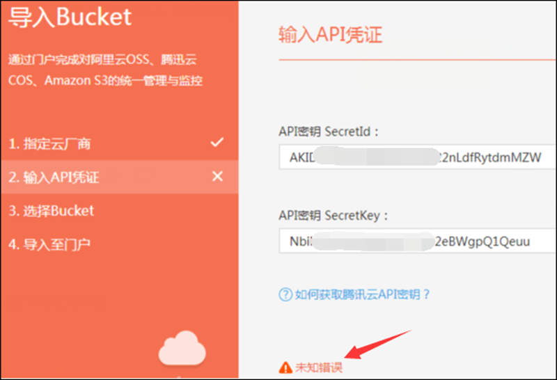 1.6、输入API凭证时提示未知错误