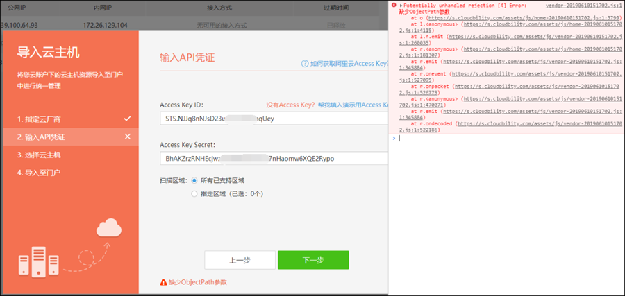 2.3、导入阿里云主机时提示:缺少ObjectPath参数