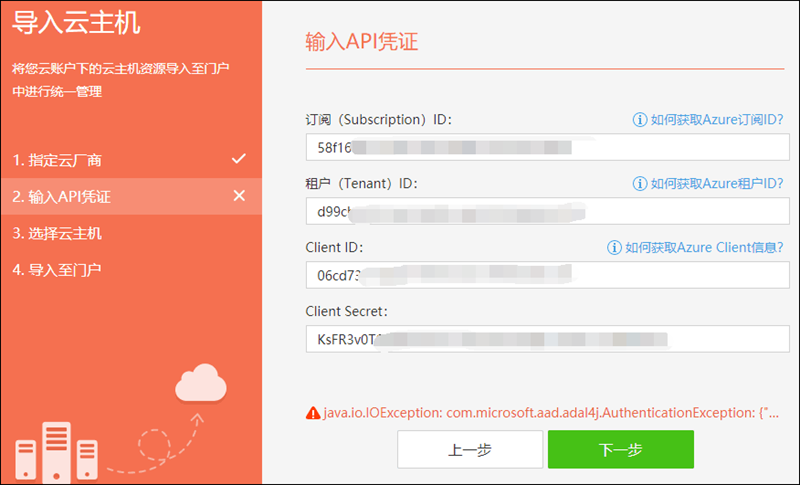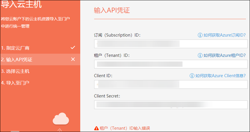 4.3、导入Azure主机时提示:租户(Tenant)ID输入错误