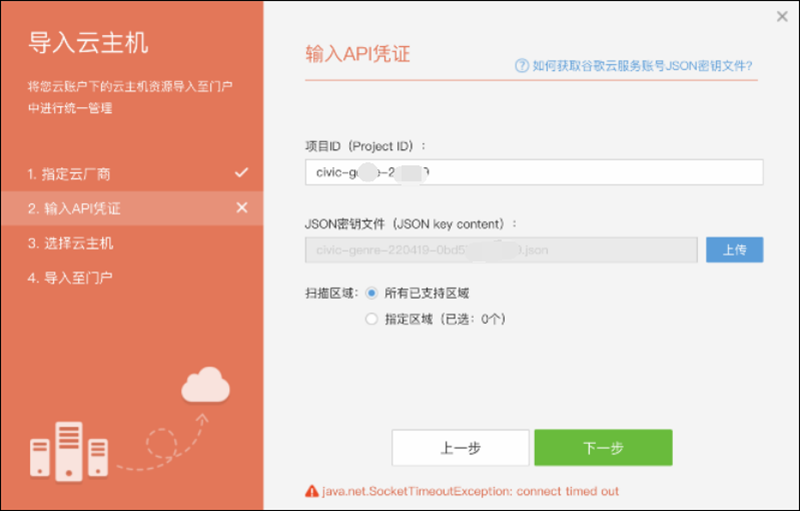 6.1、导入谷歌云主机时提示:java.net.SocketTimeoutException:connect timed out