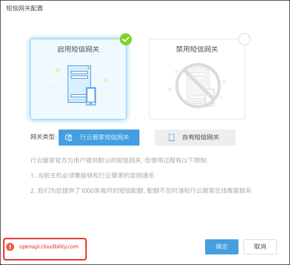 7、私有部署短信网关配置提示openapi.cloudbility.com