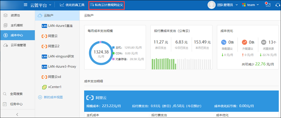 行云管家支持资源拥有成本核算功能。