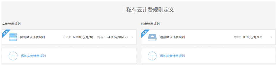 对于私有云资源,您可以定义资源的计费规则,并将计费规则应用到私有云云账户中,从而利用计费规则核算私有云资源的拥有成本。