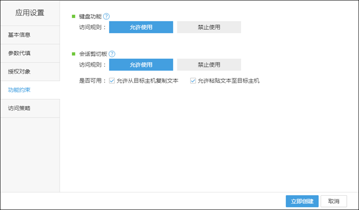 (2)限制是否允许使用会话剪切板功能,也就是是否允许目标应用与用户电脑进行文字字符复制粘贴;
