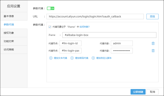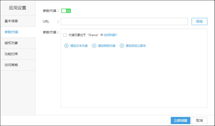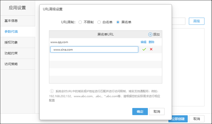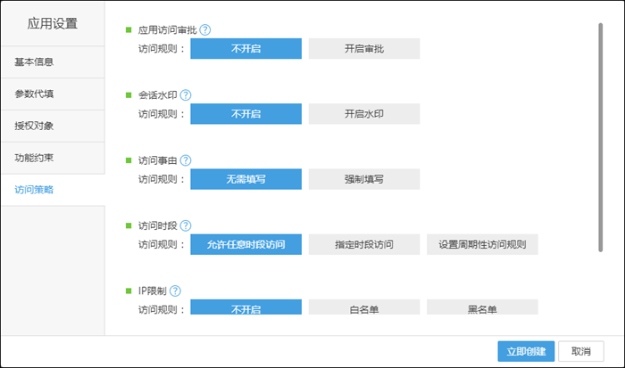 在创建、编辑应用时,我们可以给该应用设置策略进行限制;