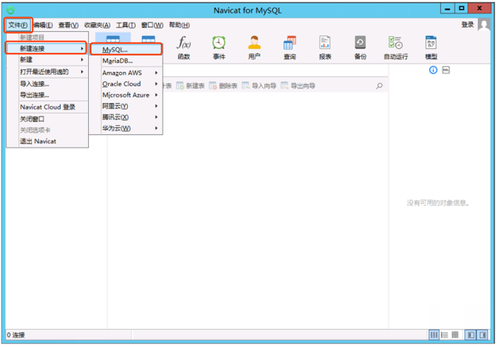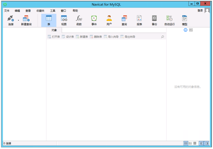 打开的Navicat的界面如下:(不同版本的Navicat其界面会有不同,这里以Navicat 12 for MySQL 为例):