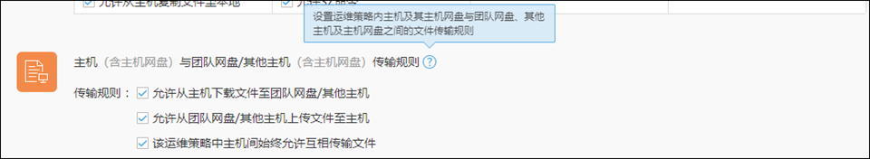 设置运维策略内主机及其主机网盘与团队网盘、其他主机及主机网盘之间的文件传输规则;